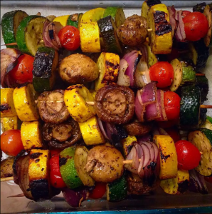 Place skewers on braai until vegetables are tender, turning and basting vegetables with remaining olive oil mixture occasionally.