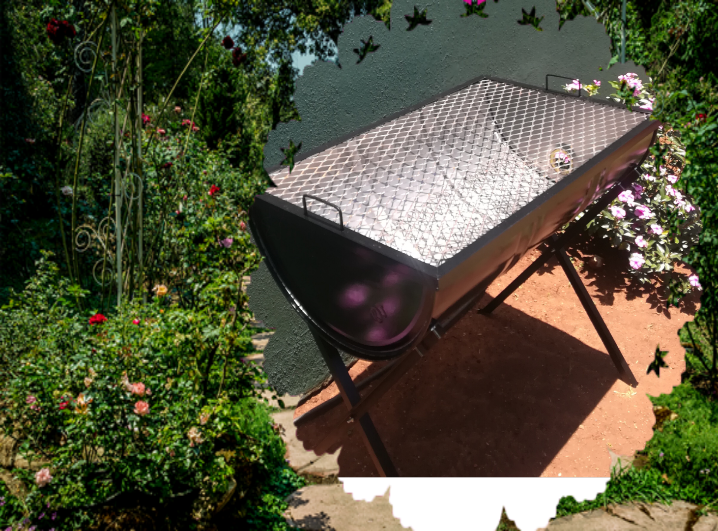 Half Drum Braai with strong grids, plus removable legs to transport easy in a car boot