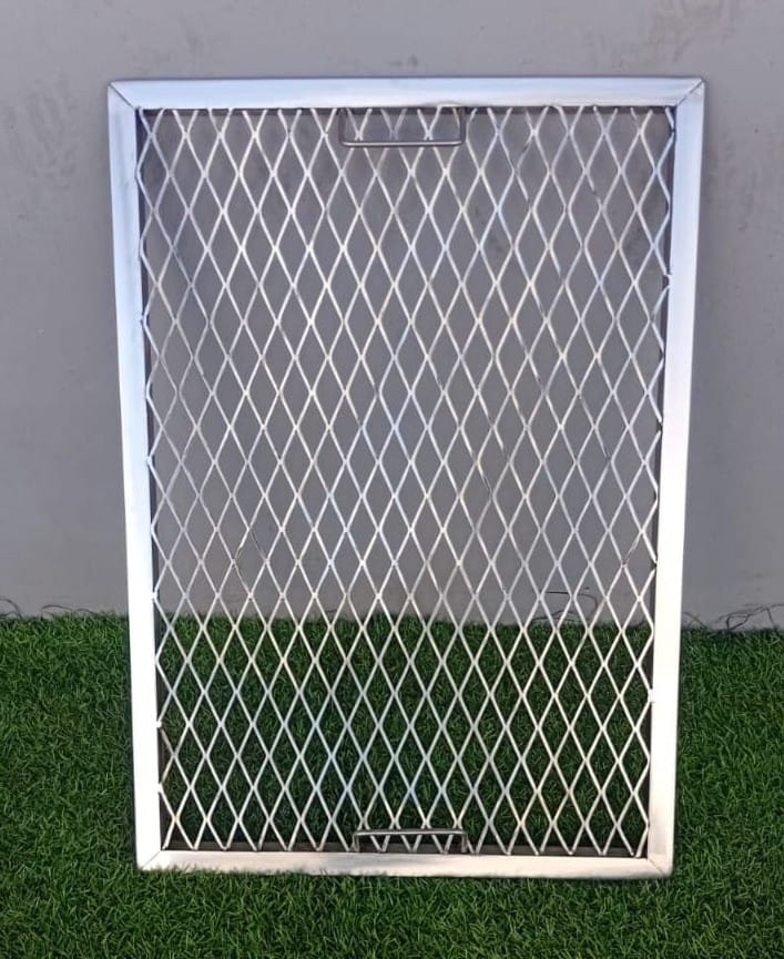 Stainless grid in diamond mesh with angle iron frame.